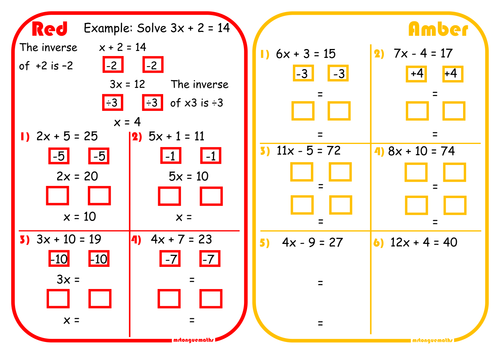 Solving Equations Worksheets Teaching Resources