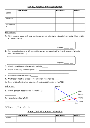 Differentiated Worksheet On Calculating Acceleration Velocity And