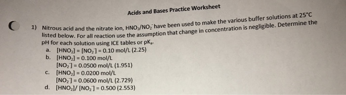 Solved Acids And Bases Practice Worksheet 1 Nitrous Acid