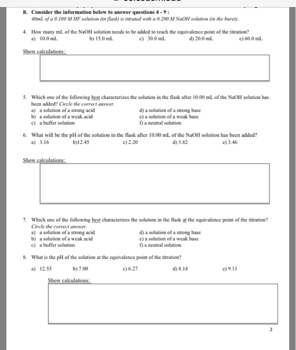 Worksheet 21 Acid Base Calculations 1 Start With 100 00 Ml Of A