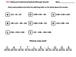 Adding And Subtracting Radicals Joke Worksheet By Math Joke