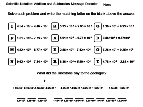 Adding And Subtracting Scientific Notation Worksheet With Answer Key Pdf