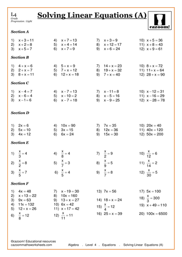 Solving Equations Worksheets Teaching Resources