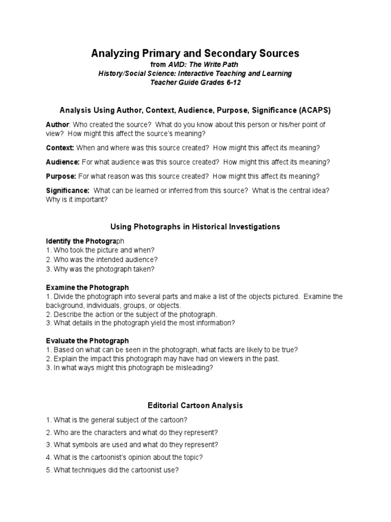 Analyzing Primary And Secondary Sources Using Aparty Tpt