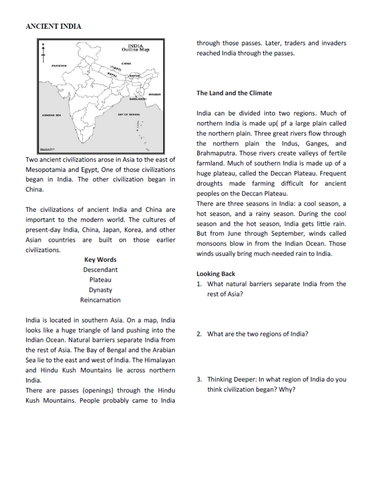 The students will find physical features like the himalayas hindu kush mountains indus river ganges river arabian sea bay of bengal the eastern ghats the western ghats the deccan plateau and the gangetic plain. Ancient india china what is a civilization. Use the map located on page 125 in your textbook to help you.