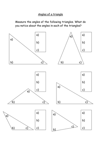 Measuring Angles In A Triangle Teaching Resources