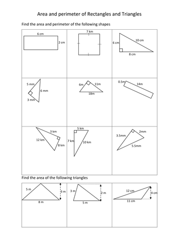 Area And Perimeter Of Rectangles And Triangles Worksheets