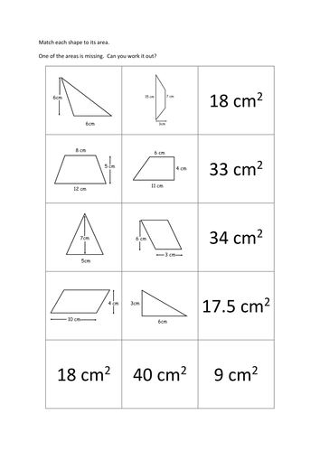 Area Of Basic Shapes Worksheet Ks3 Teaching Resources