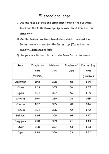Average Speed Worksheets And Assessments