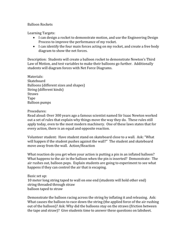 Balloon Rocket Lesson Plans Worksheets Reviewed By Teachers