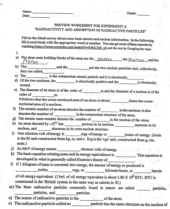 Atomic Basics Worksheet Youtube